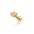 Különleges jelentés és stílus egy apró ékszerben! Ez a 14 karátos sárga aranyból készült talpas piercing az ikonikus „evil eye” (védelmező szem) formát jeleníti meg, amely a hagyomány szerint szerencsét hoz és védelmet nyújt. Közepén csillogó cirkónia kő gondoskodik a ragyogásról, miközben a precíz kidolgozás divatos és egyedi megjelenést biztosít.