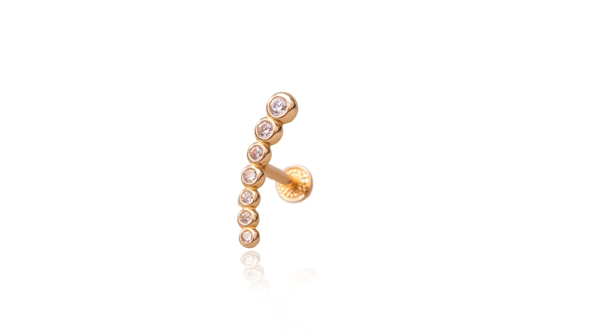 A 8 mm-es szárhossz és az 1,2 mm-es szárvastagság tökéletes kényelmet biztosít, míg a 0,7 grammos súly prémium érzetet nyújt viselés közben. Tökéletes fül- vagy porcpiercingként is.