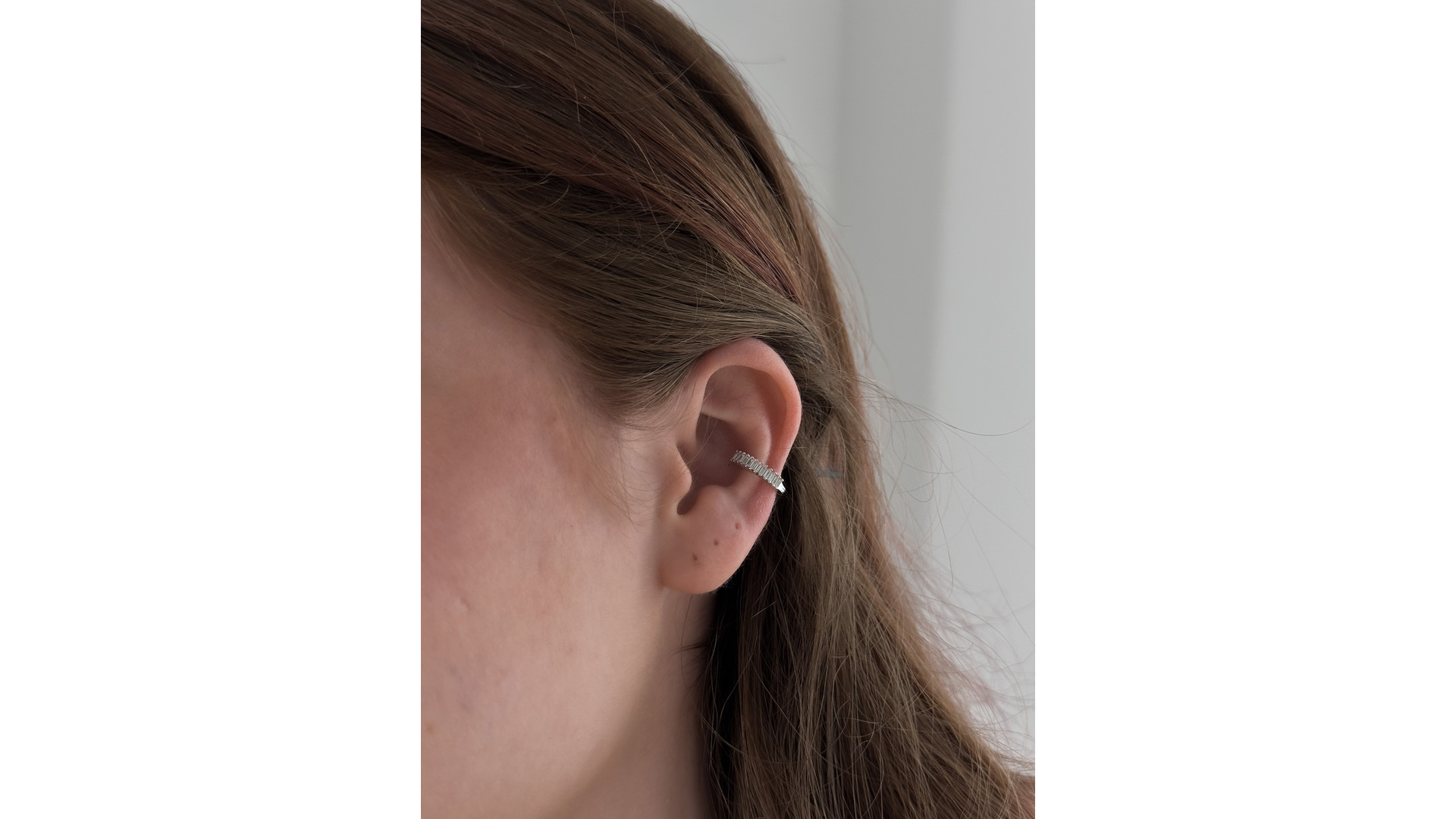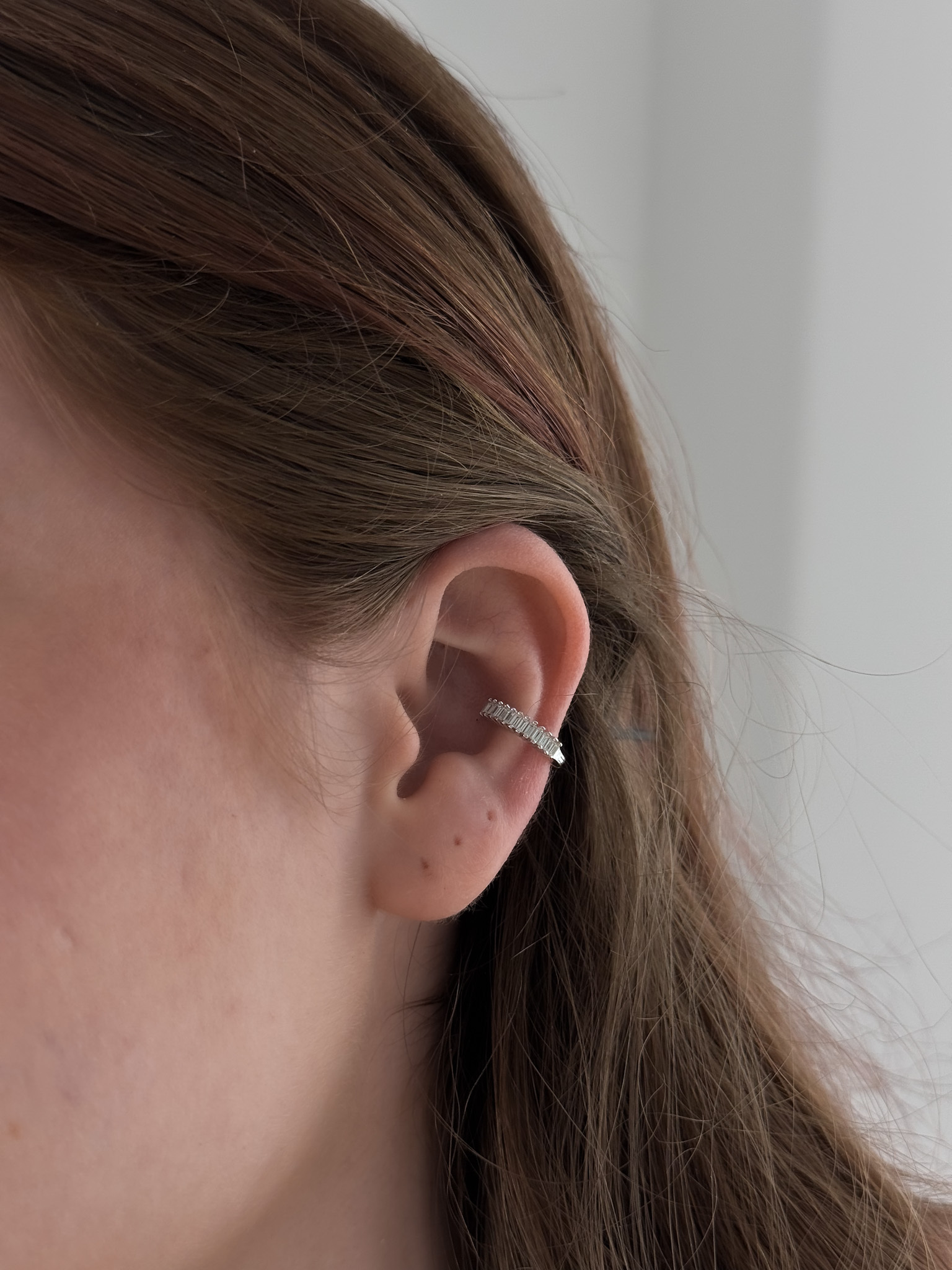 Elegáns baguette cirkóniás conch piercing S925 ezüstből. Kényelmes viselet valódi piercinghez, hipoallergén kialakításban. Látványos, mégis kifinomult megjelenés.