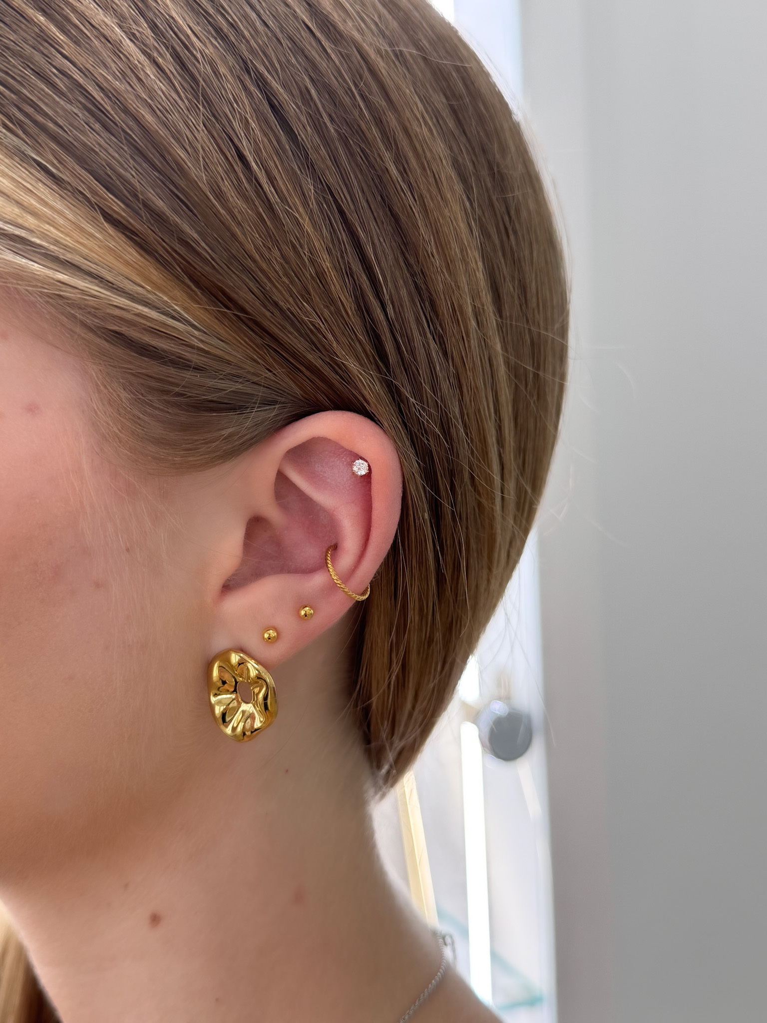 A piercing különlegessége a finoman megmunkált csavart textúra, amely játékosan töri meg a fényt, miközben letisztult és modern megjelenést biztosít. Ez a piercing tökéletes választás azoknak, akik a minimalizmust szeretik, mégis figyelnek az apró részletekre.