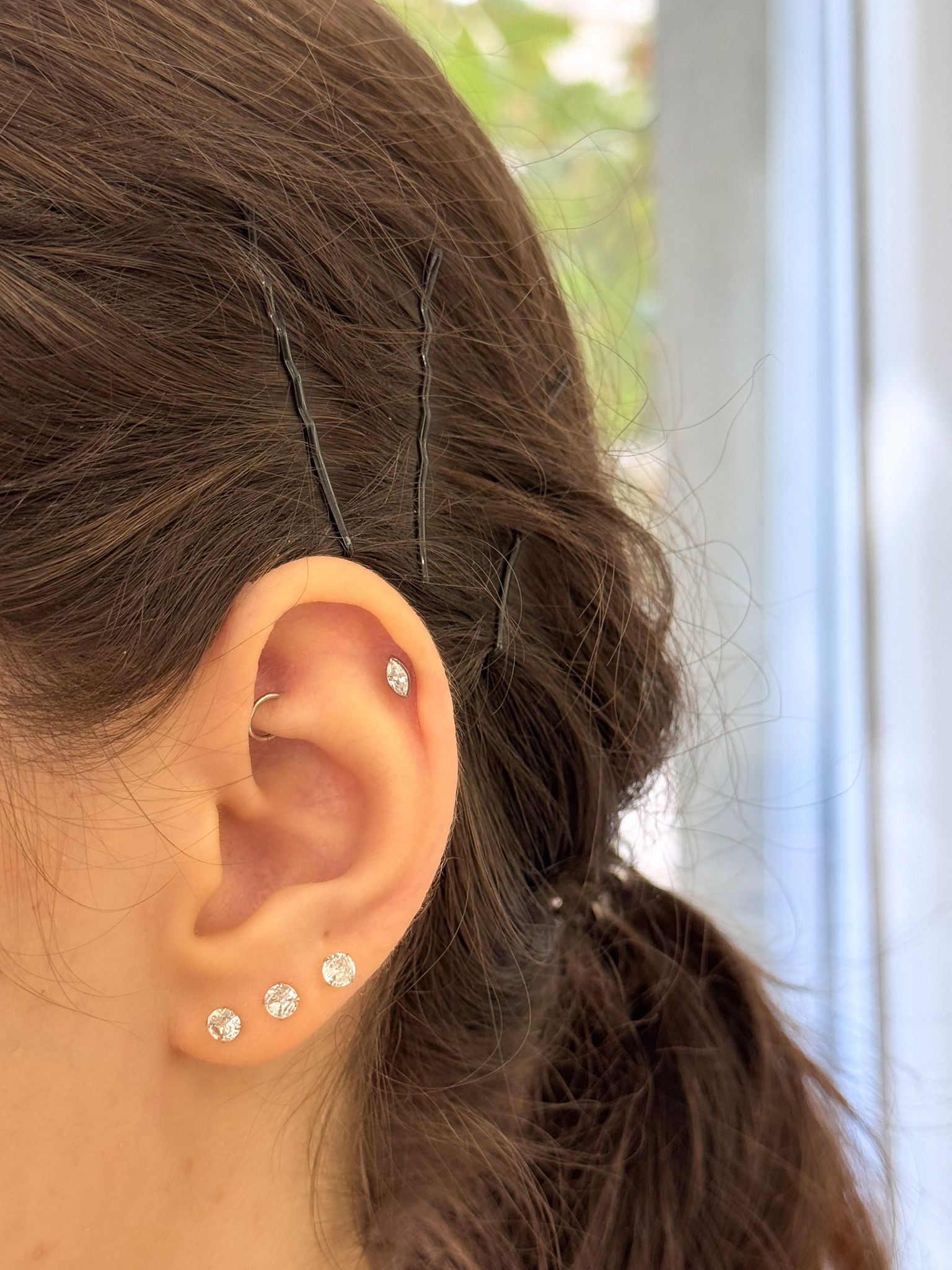 A piercing orvosi minőségű titánból készült, így hipoallergén, könnyű és tartós. Az 1,2 mm szárvastagság és 8 mm szárhossz biztosítja a kényelmes és biztonságos illeszkedést, akár új piercing esetén is.