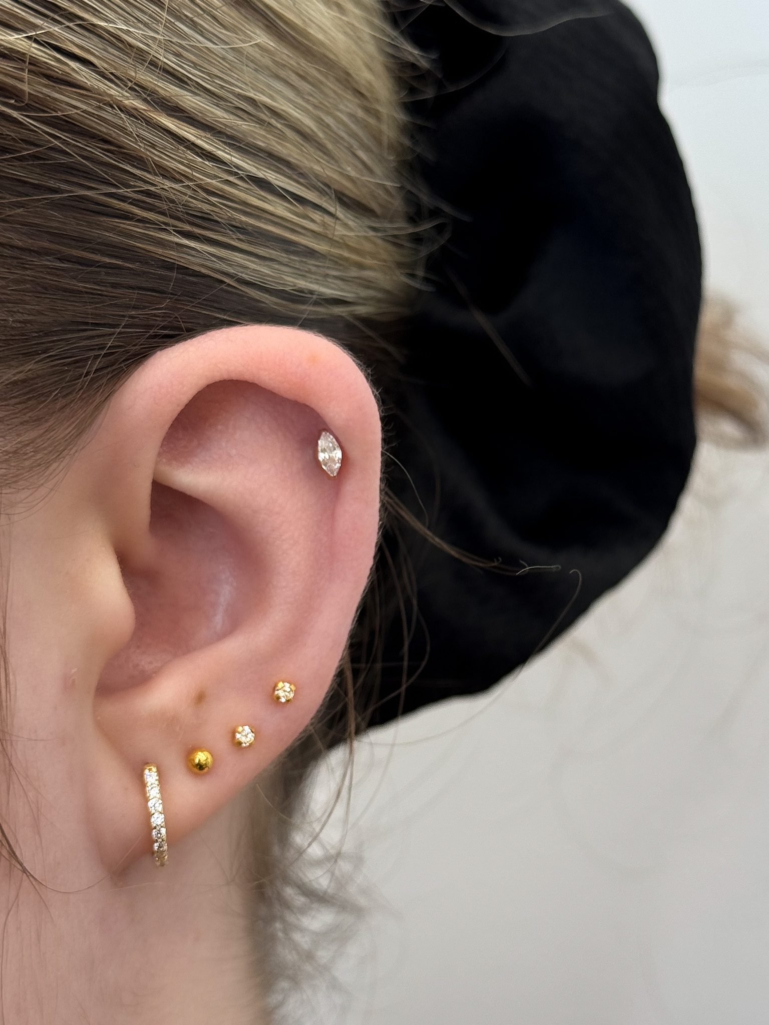 A piercing elegáns és letisztult megjelenést kínál, a természet ihlette csepp formájú cirkónia kő ragyogásával. A fényesen csiszolt kő tökéletesen kiemeli a fül formáját, miközben időtálló eleganciát sugároz – ideális választás mindennapi viselethez és különleges alkalmakhoz is.