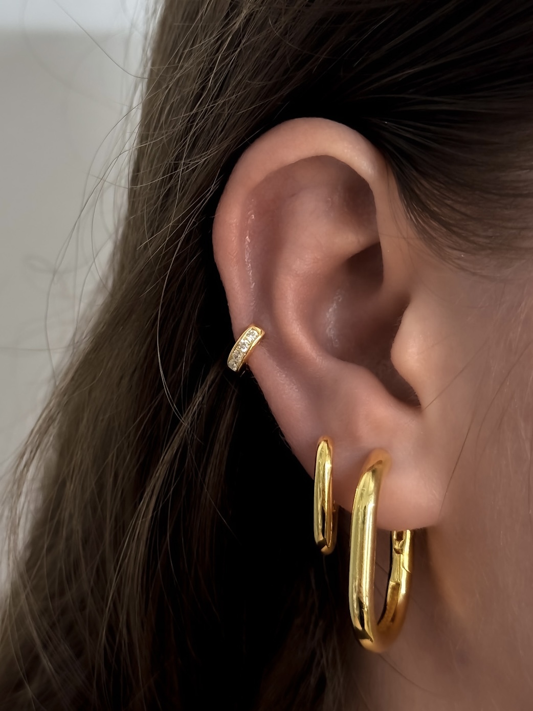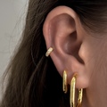 Prémium S925 ezüst arany bevonattal, 6 mm belső átmérővel és 1,2 mm szárvastagsággal. Csillogó cirkónia kövekkel díszített, kis méretű ékszer, amely ideális helix, rook, tragus vagy orrpiercing formájában. Figyelem: kis méretű, szoros illeszkedést ad! Hipoallergén, bőrbarát és tartós kivitel, mindennapi és alkalmi viseletre egyaránt.