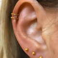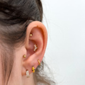 A piercing hipoallergén orvosi acélból készült, így érzékeny bőrre is ideális, az arany bevonat pedig tartós és kopásálló. A lapos hátlap különösen kényelmessé teszi a mindennapos viseletet, nem nyomja a bőrt, és nem akad bele.