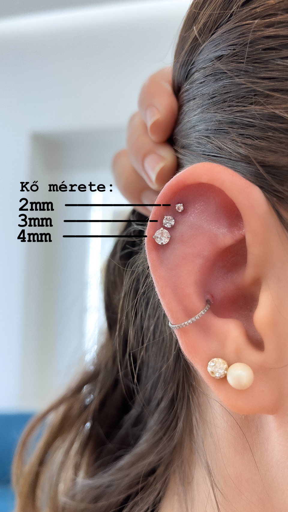 A piercing hipoallergén orvosi acélból készült, Ãgy tartós és érzékeny bÅ‘rre is biztonságos választás. A lapos hátlap kényelmes viseletet nyújt, nem nyomja a bÅ‘rt, nem akad bele, Ãgy kiváló ajak- vagy fülpiercingként.