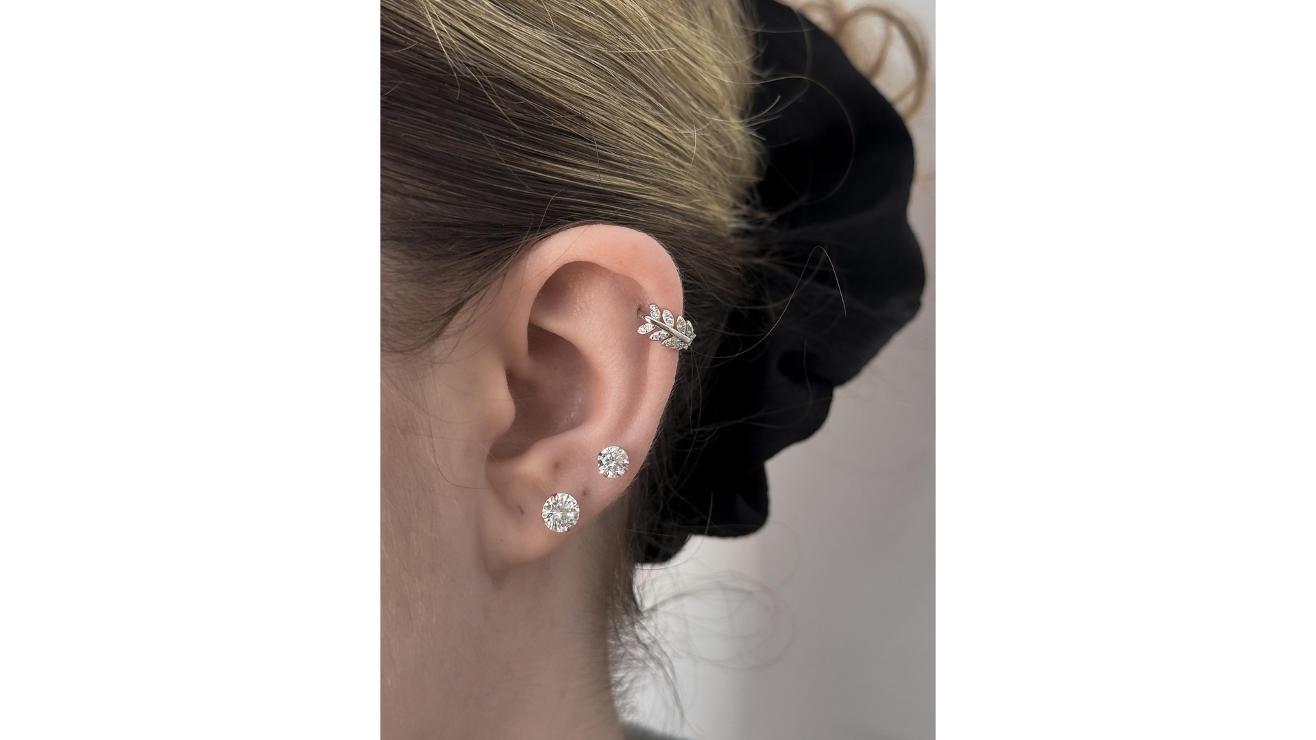 Ez a finoman kidolgozott levél mintás helix karika piercing elegáns és időtálló kiegészítő, amely bármilyen stílushoz illik. Kiváló minőségű S925 sterling ezüstből készült, így hipoallergén és bőrbarát, hosszú távon is biztonságos viselet érzékeny bőr esetén is.